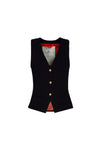 La BLAZER DOS BOTONES NEGRA MARGARITA es un emblema de la elegancia atemporal y la sastrería con presencia. Confeccionada en exquisito tejido super crepé negro, esta pieza luce un patrón americana clásico con levita, una silueta definida que alarga la figura. Su sofisticada solapa de pico garantiza un fit impecable y poderoso.