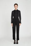 La BLAZER AZABACHE PARIS VELVET es la encarnación de la sofisticación atemporal, una pieza esencial para la mujer moderna que busca distinción. Confeccionada en un suntuoso terciopelo 100% algodón de suavidad increíble, fabricado con maestría en España, esta blazer entallada negra deslumbra con su profundo y cautivador tono azabache. Su diseño impecable se distingue por una solapa de pico y un único botón frontal, que estiliza la figura con una elegancia inigualable.